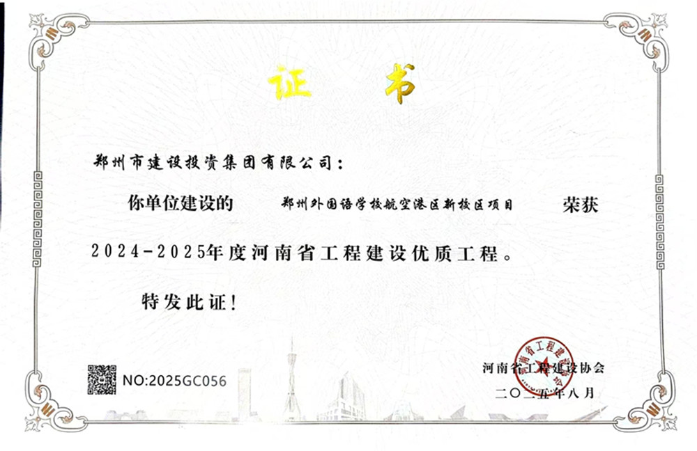 近日,由乐鱼官方端网站登录入口-乐鱼(中国) 代建的郑州外国语学校航空港区新校区项目荣获2024-2025年度河南省工程建设优质工程荣誉。