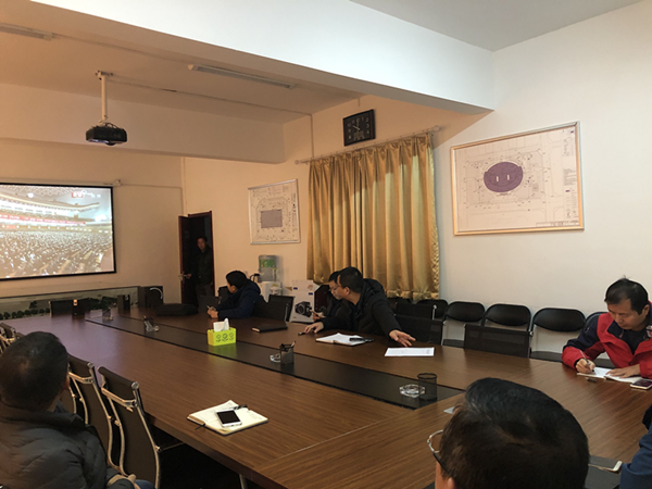 文博中心项目部:利用有限场地,通过直播平台或手机端组织员工收看会议盛况。