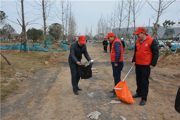 上午十时三十分,志愿服务活动开始后,乐鱼官方端网站登录入口-乐鱼(中国) 党委委员、副总经理、项目部总经理汪洋亲自带头参加活动,其他党员干部带头干,职工群众积极干,参建单位负责人志愿加入干,大家拿起工具、弯下腰去,捡起草地上的生活垃圾,集中放进现场放置的垃圾桶内;没有拿到工具的同志们也拿起简易垃圾袋,将捡到的生活垃圾放进垃圾袋盛满后再放进垃圾桶内。一时间,党徽熠熠、爱心闪闪、干劲满满,不到一个小时时间,约20人的志愿服务队伍完成了近20000平米区域的垃圾清理任务,景观施工现场面貌大为改观。